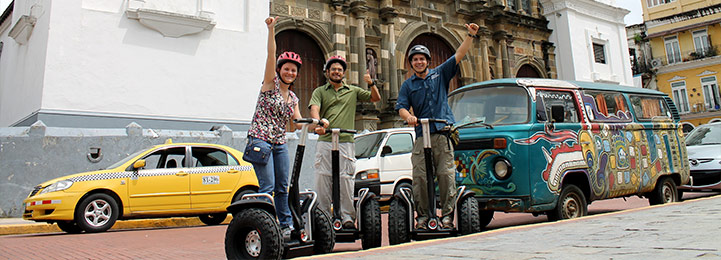 El official Segway® Tour en Panamá debe ser parte del itinerario de actividades durante su estadía en Panamá. Nuestro equipo de profesionales le proveerá de una experiencia diferente de ver los atractivos turísticos, sitios históricos importantes y naturales de Panamá. Todo esto utilizando su ambientalmente amigable Transporte Personal. No hay manera más divertida de conocer a Panamá sin sentarse. Nosotros le enseñamos como pararse y manejar el nuevo 2013 Segway X 2 siguiendo todas las reglas de seguridad.