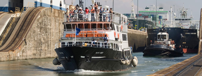 La mejor manera de conocer su funcionamiento e historia es realizando uno de nuestros tours por el Canal de Panamá en el Pacific Queen. Durante su gira tendrá la oportunidad de ver la operación del canal de cerca, transitando la vía con los grandes barcos.